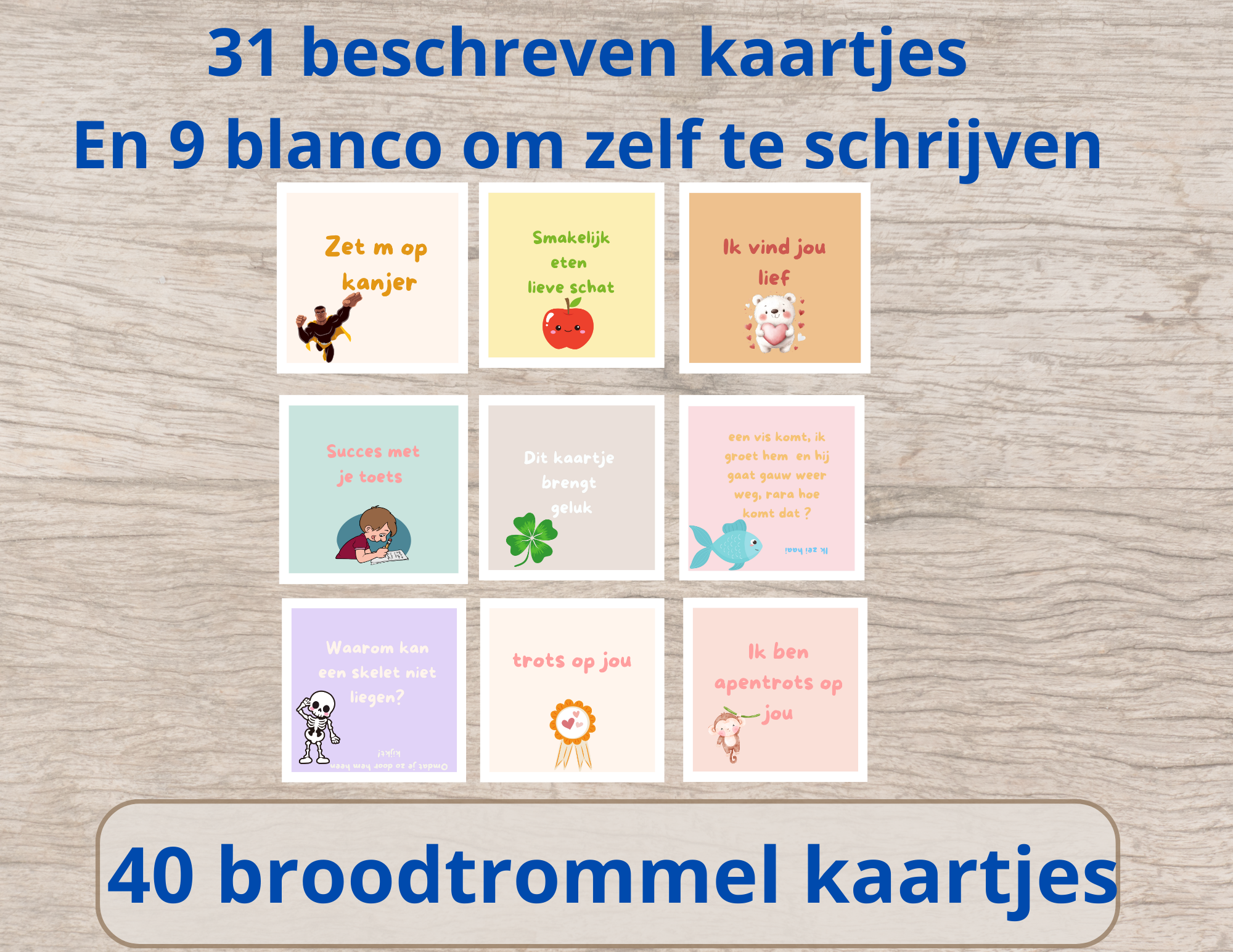 Deze Nederlandse lunchbox kaartjes maken de lunchtijd van je kind extra bijzonder met een lieve boodschap of een grappige mop. Ze brengen een stukje thuis mee naar school en geven je kind een gevoel van steun en verbondenheid. Op een moeilijke dag toveren ze een glimlach op het gezicht en geven ze net dat beetje extra zelfvertrouwen!